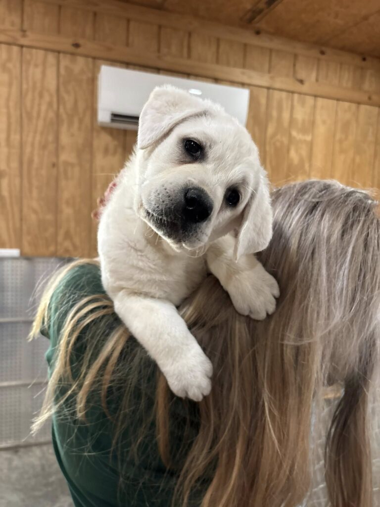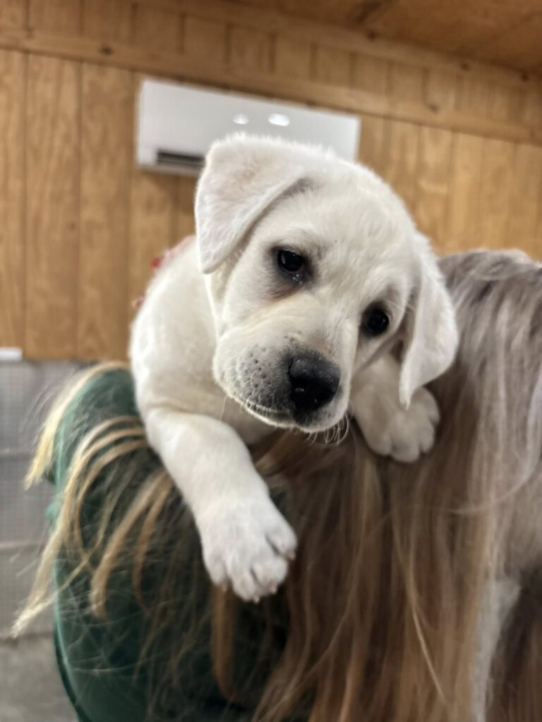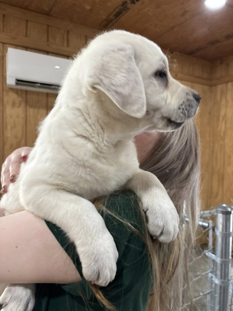 This little dumpling is ready to come home with you, snow white with black pigment. Just a delight to play with, she has a fireside temperment. This baby will make a wonderful addiction to your family. Contact me via Facebook https://www.facebook.com/idlewild.labradors or Phone (931) 808-9594